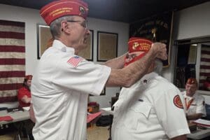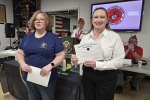- Joe McCarter, Unit Commander of Bonnyman Young Marines accepting the detachment donation…