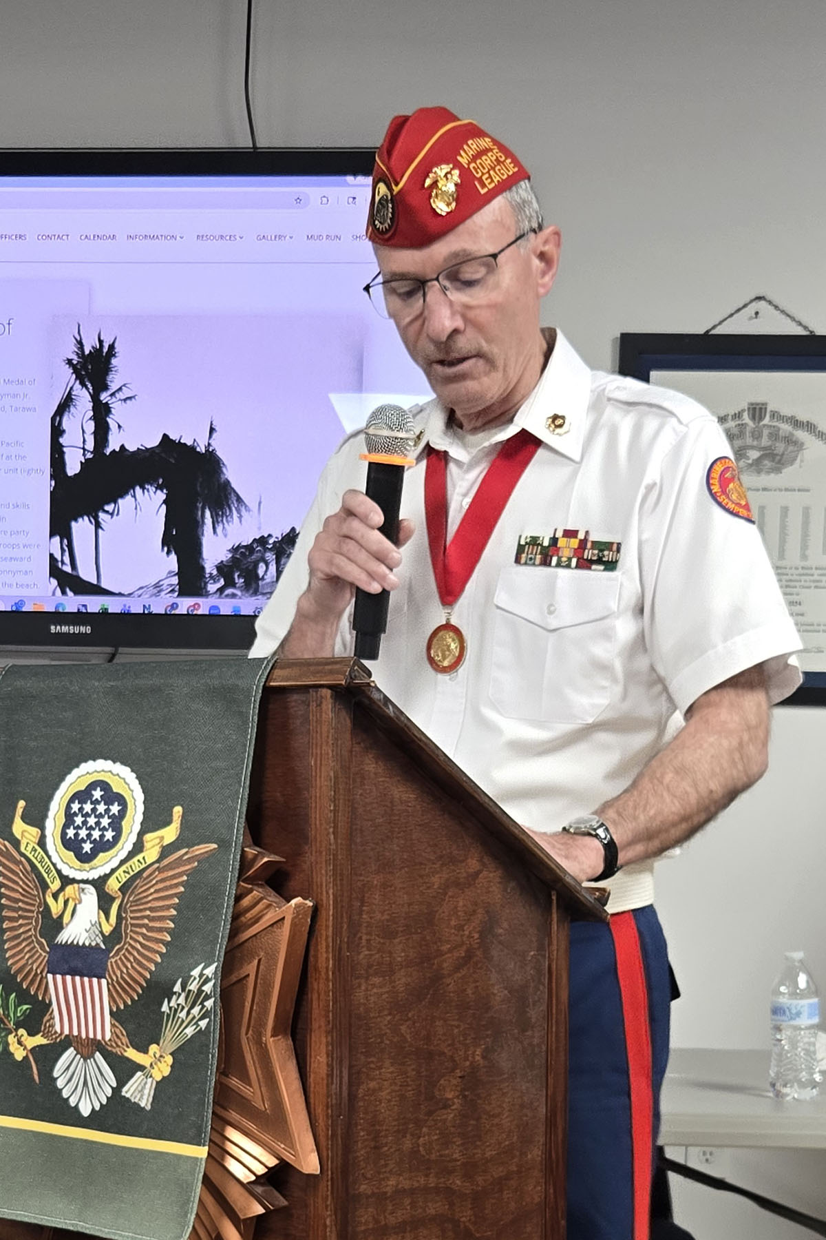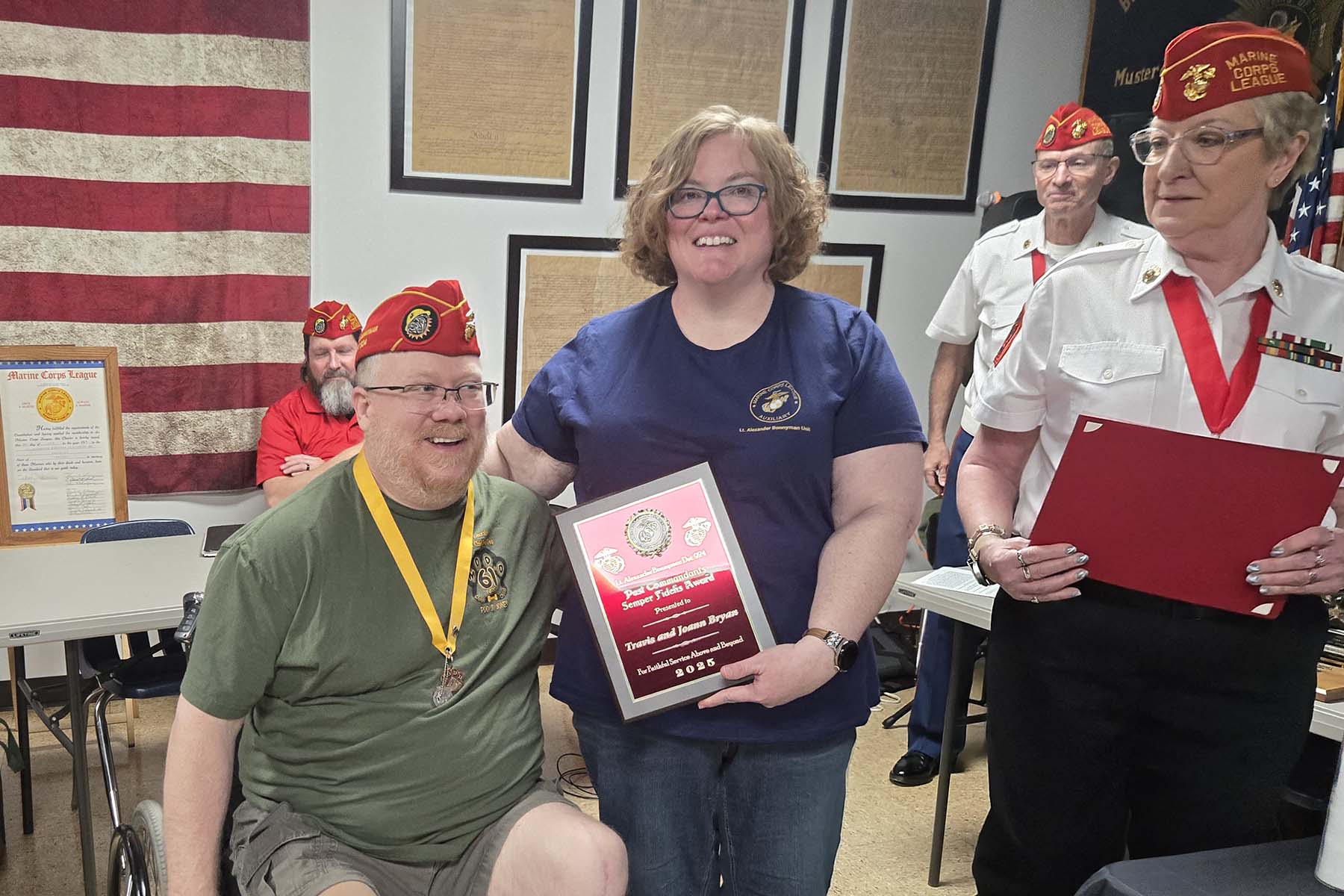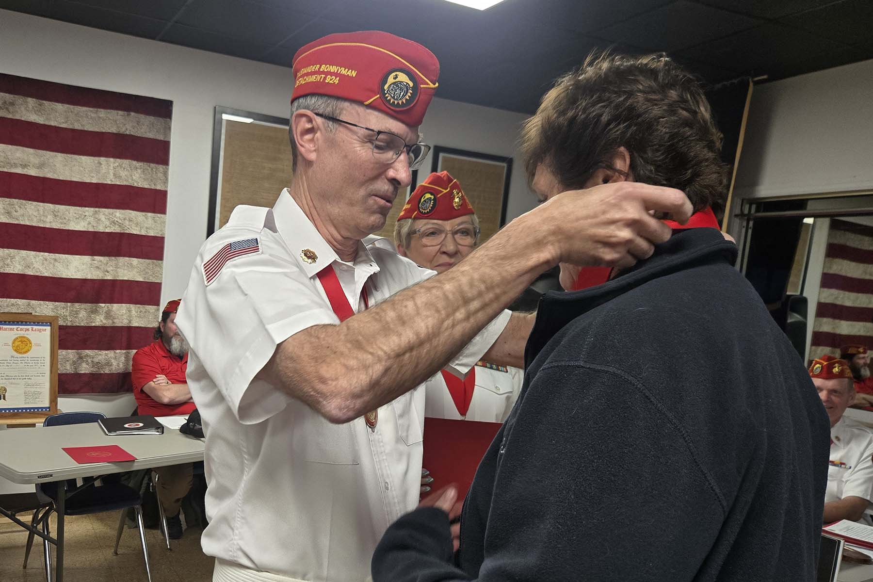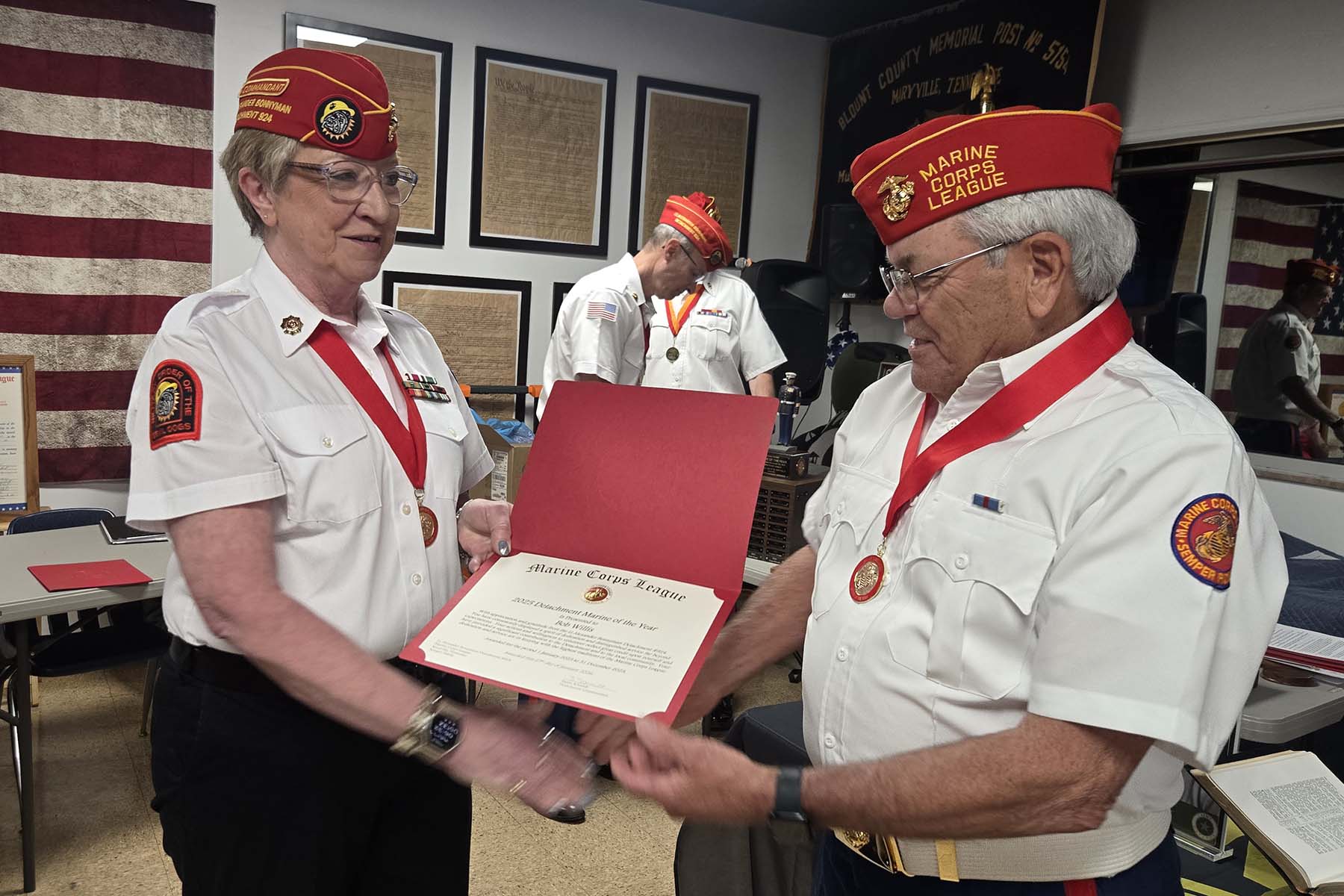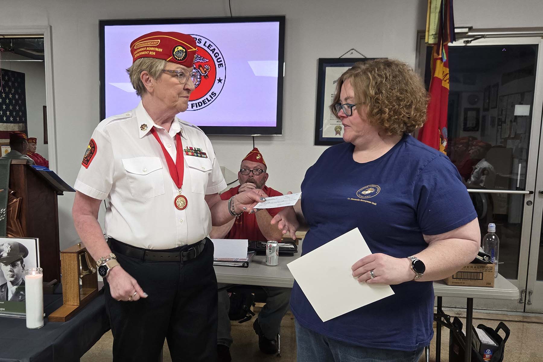 - Joe McCarter, Unit Commander of Bonnyman Young Marines accepting the detachment donation…