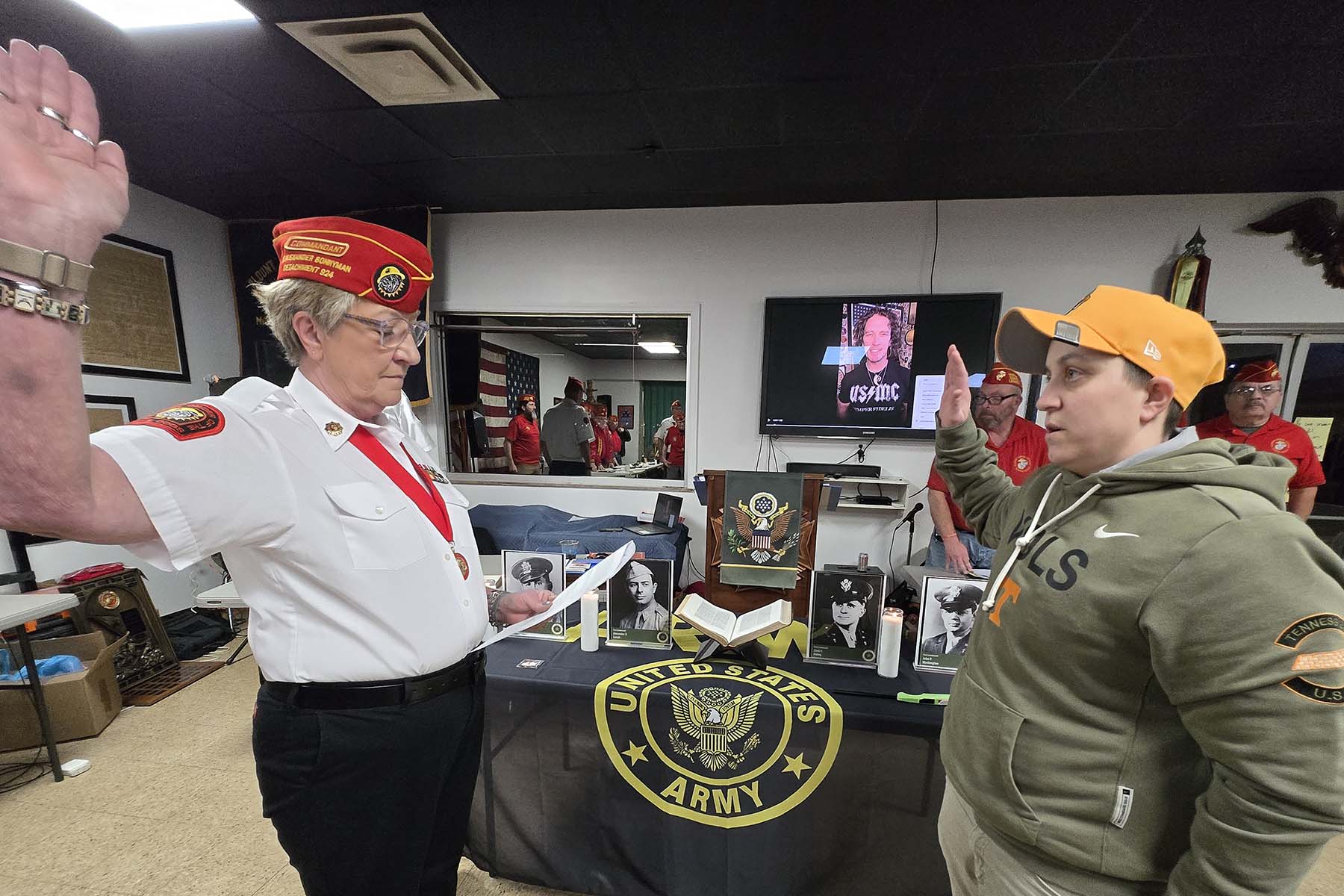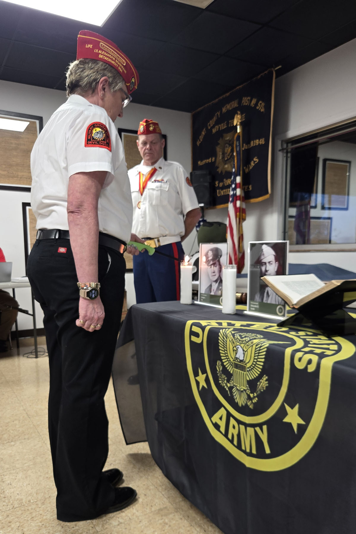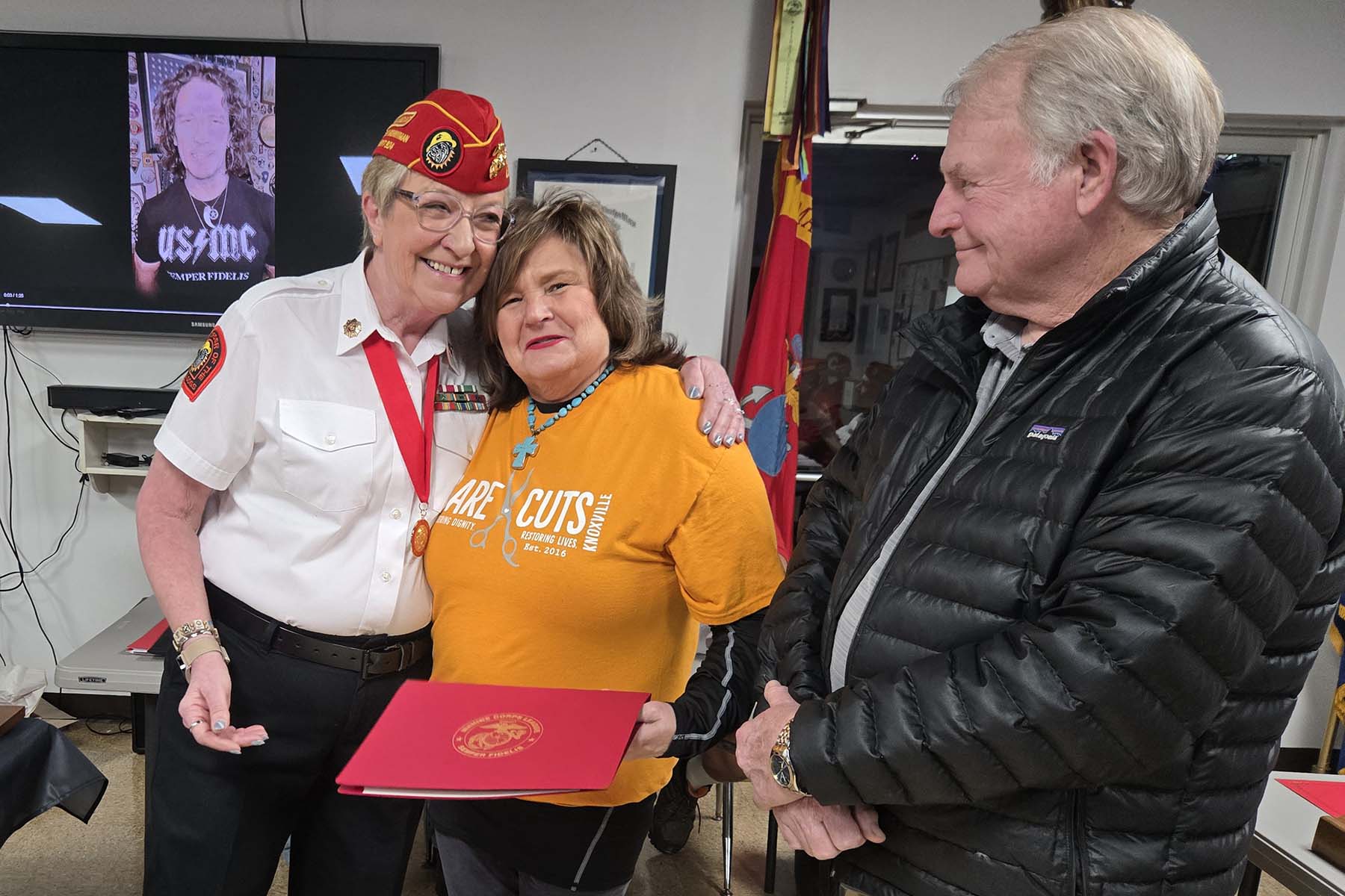 - Commandant Susie Schmidt getting ready to award some beautiful flag cases